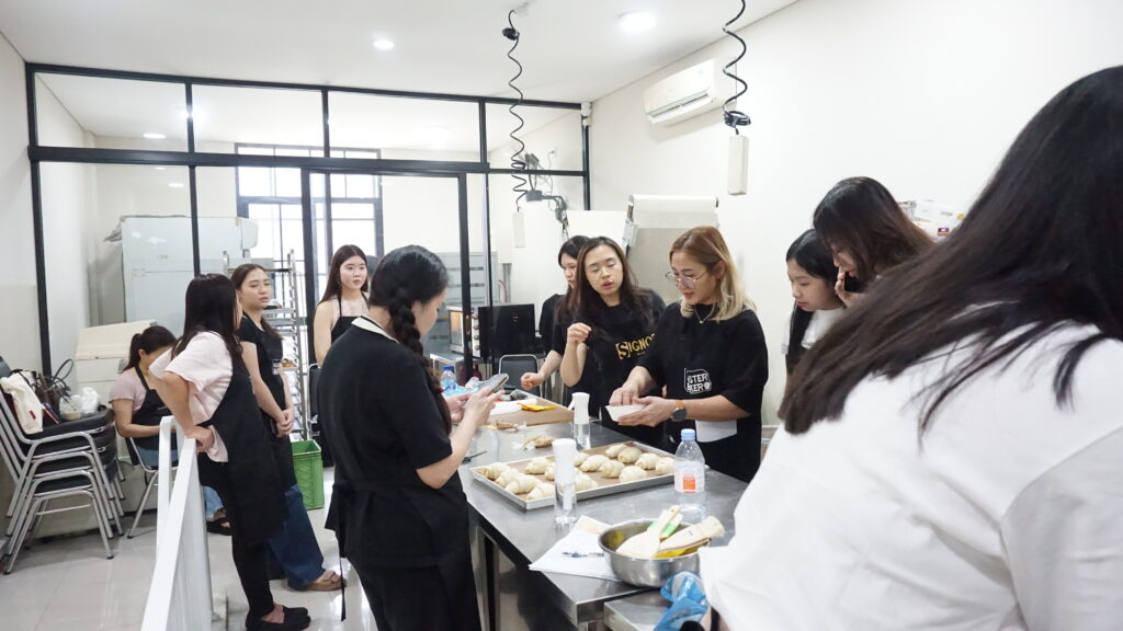 Chef Sienny membimbing peserta langkah demi langkah, mulai dari teknik menguleni, membentuk adonan, hingga memanggang dengan hasil maksimal.