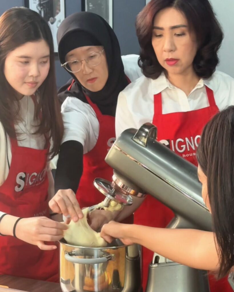Salt Bread Workshop Batch 1 & 2 sukses digelar dengan penuh antusiasme di Signora Surabaya. Peserta diajak langsung praktik dari awal, mulai dari membuat adonan, membentuk adonan roti, hingga memahami cara memanggang yang benar agar hasilnya lembut, matang merata, dan tentu saja lezat.