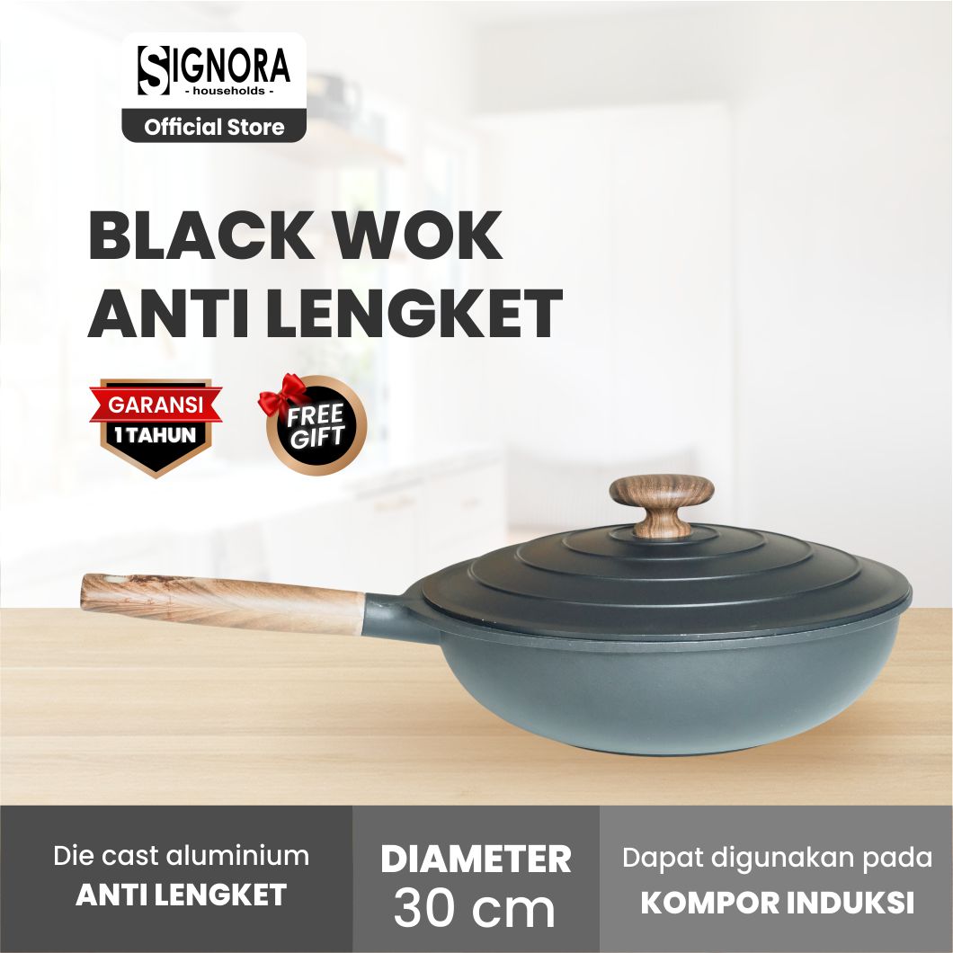 Desain Elegan, Teknologi Canggih untuk Hasil Maksimal Black Wok memadukan estetika dan fungsi dalam satu paket. Dengan desain tutup unik berbahan die cast aluminium tebal, dilengkapi titik DOT di seluruh permukaan bawah tutup, uap air tertahan sempurna sehingga proses memasak jadi lebih cepat dan efisien.