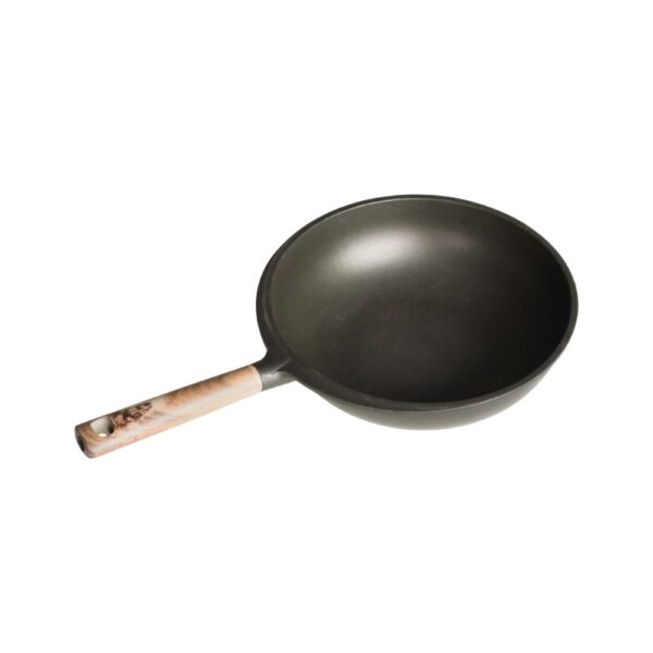 Soft touch handle bergaya kayu memberikan kenyamanan dan sentuhan natural saat digunakan. Baik tutup maupun bodi terbuat dari die cast aluminium yang dilapisi anti lengket 3 lapis, menjamin daya tahan dan kemudahan saat memasak. Kompatibel dengan kompor induksi, Black Wok siap menjadi andalan di dapur modern Anda.