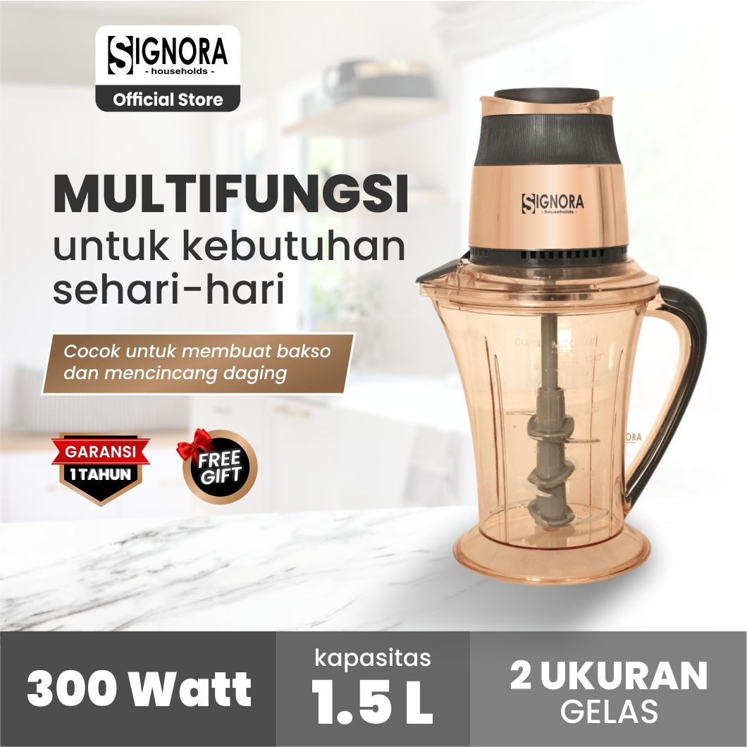 Skip to contentNikmati kemudahan membuat mayonnaise dan bakso di rumah dengan Signora Food Chopper! Dilengkapi pengaduk untuk membuat mayonaise dengan mudah dan membuat bakso dengan kapasitas daging hingga 250 gram dengan hasil halus dan merata. Praktis dan higienis, cocok untuk sajian rumahan lebih sehat dan berkualitas.
