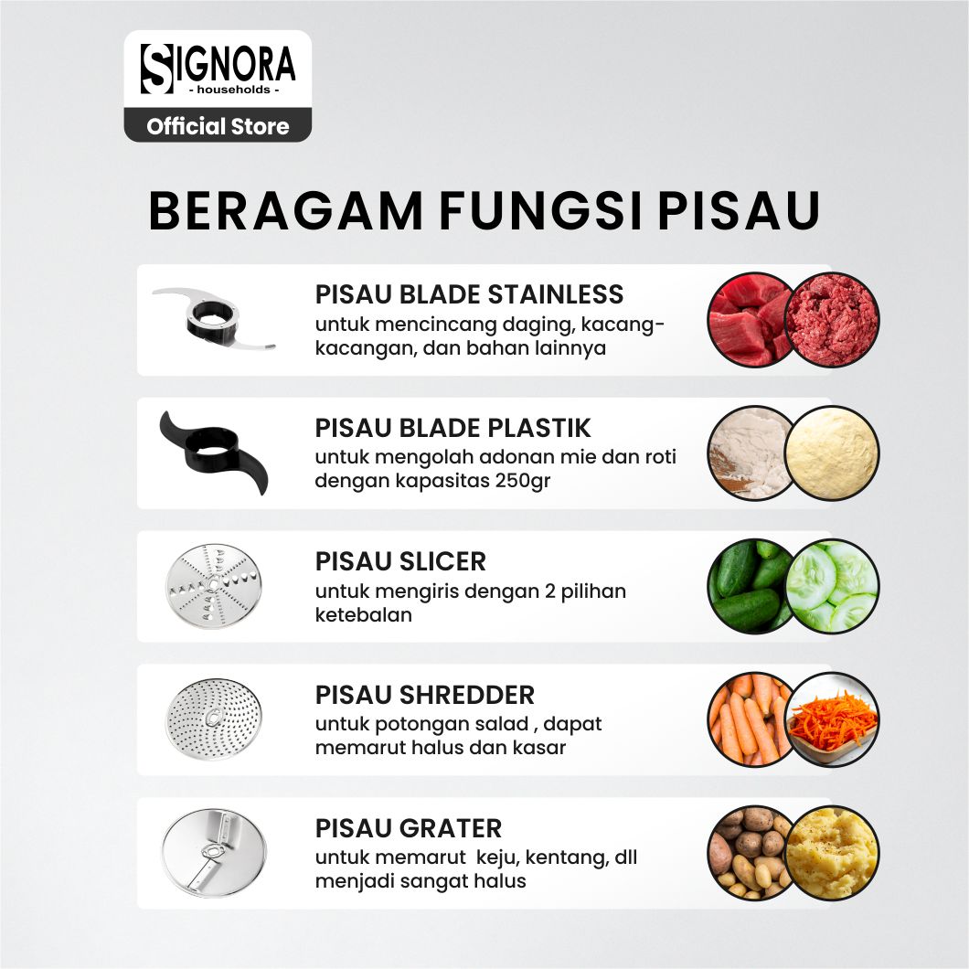 Tingkatkan kemudahan aktivitas memasak di dapur Anda bersama Food Processor Dcopper. Hadir dengan desain elegan dan multifungsi, alat ini mempermudah Anda membuat bakso, mencincang bawang merah dalam hitungan detik, hingga memotong aneka sayuran seperti wortel dan kentang. Dilengkapi laci penyimpanan aksesoris yang praktis, serta motor yang lebih bertenaga untuk hasil maksimal. Praktis, cepat, dan membuat proses memasak jadi lebih menyenangkan!