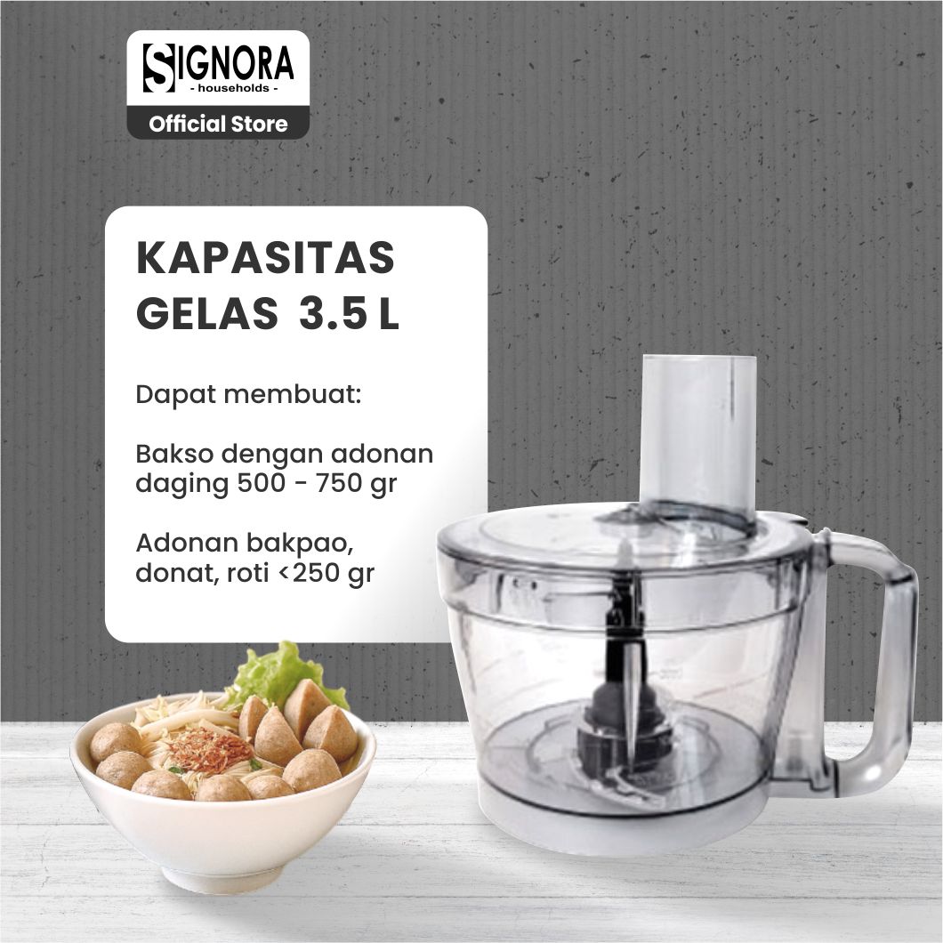 Food processor pro ini akan sangat membantu mempermudah kegiatan dapur Anda, dengan desain yang elegan. Mesin ini memiliki banyak fungsi seperti membuat bakso, merajang bawang merah secara cepat, memotong sayuran seperti wortel, kentang dan lainnya. Dengan alat ini, semua kegiatan dapur jadi mudah dan cepat