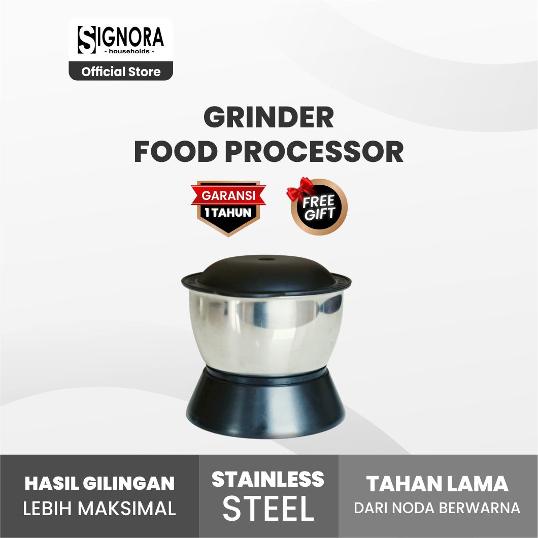 Grinder Food Processor adalah aksesoris tambahan yang dirancang khusus untuk melengkapi food processor Anda. Terbuat dari bahan stainless steel berkualitas, grinder ini mampu menggiling bumbu tanpa tambahan minyak maupun air, sehingga menghasilkan tekstur halus dan rasa yang lebih maksimal.