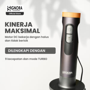 Ditenagai motor DC senyap yang bekerja halus tanpa berisik, dan layar LCD besar menampilkan waktu dan kecepatan dengan jelas, Dengan 9 tingkat kecepatan, tombol Turbo, serta aksesori lengkap, Hand Blender ini siap mendukung dapur modern Anda.
