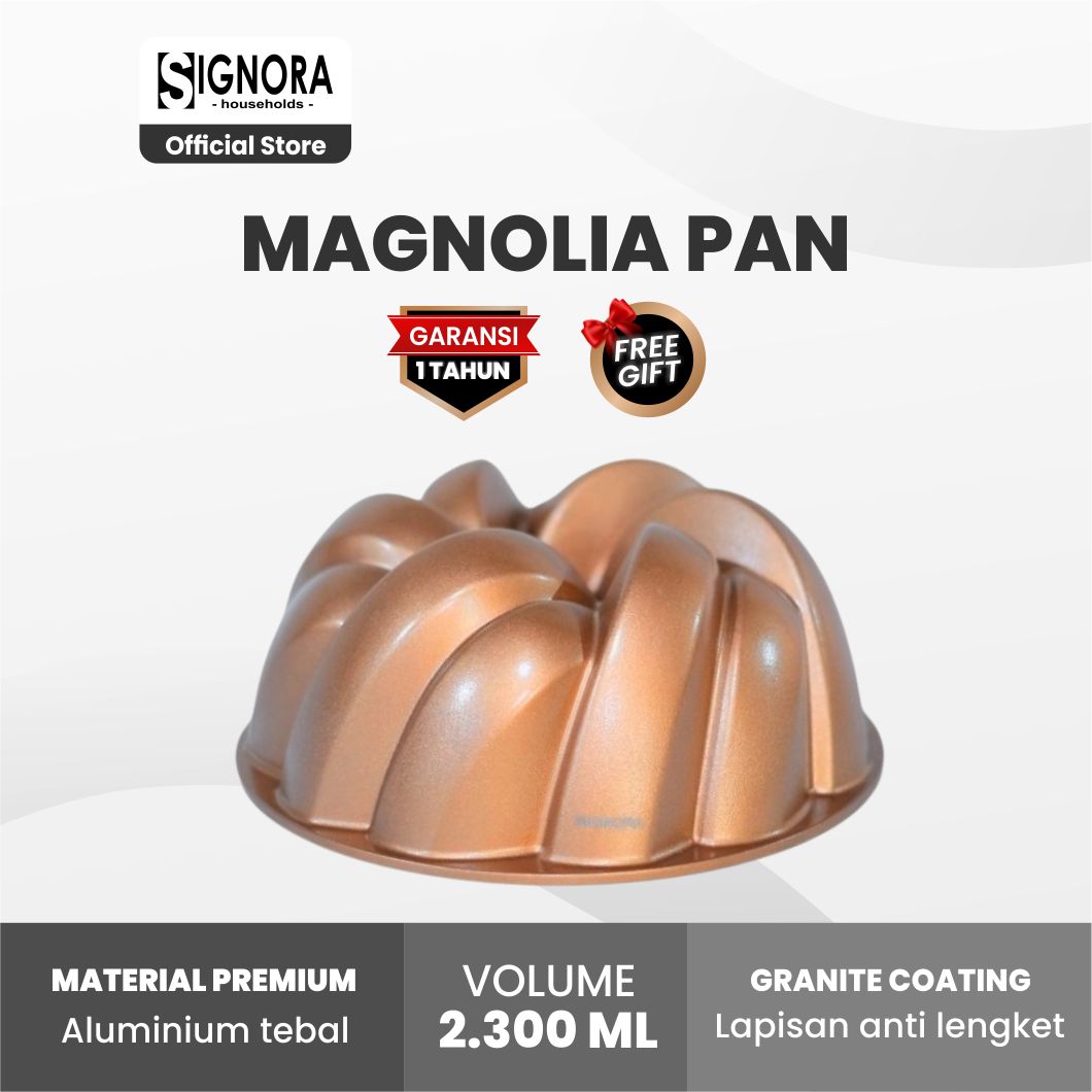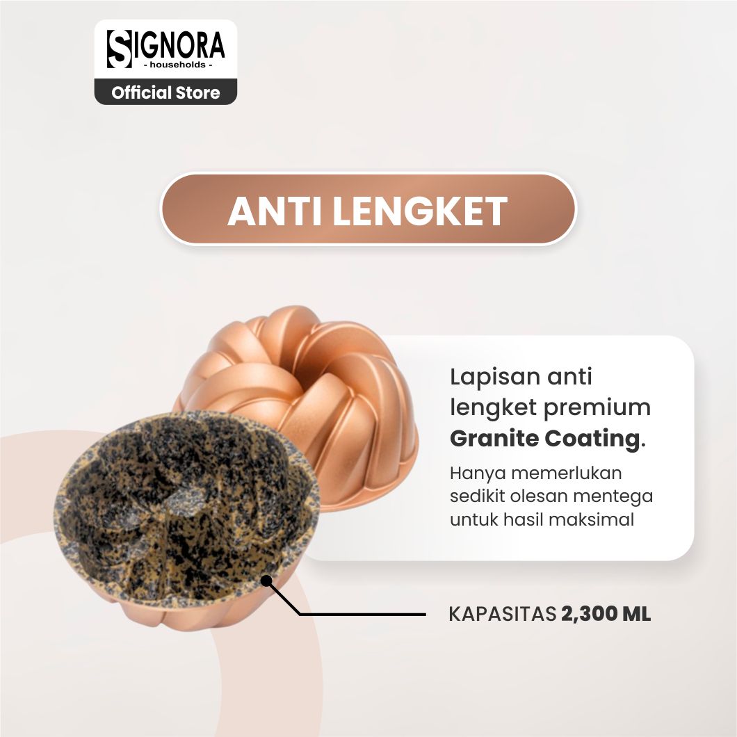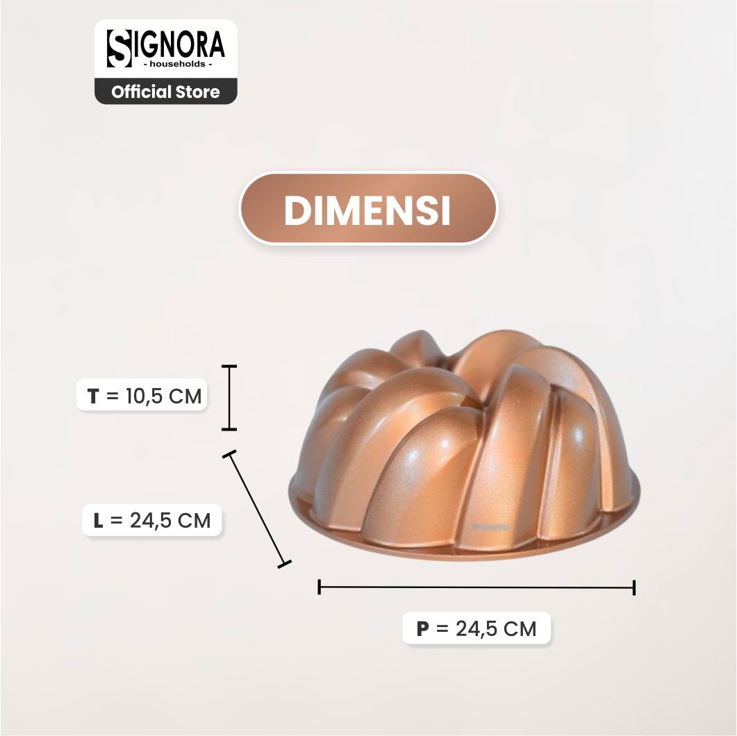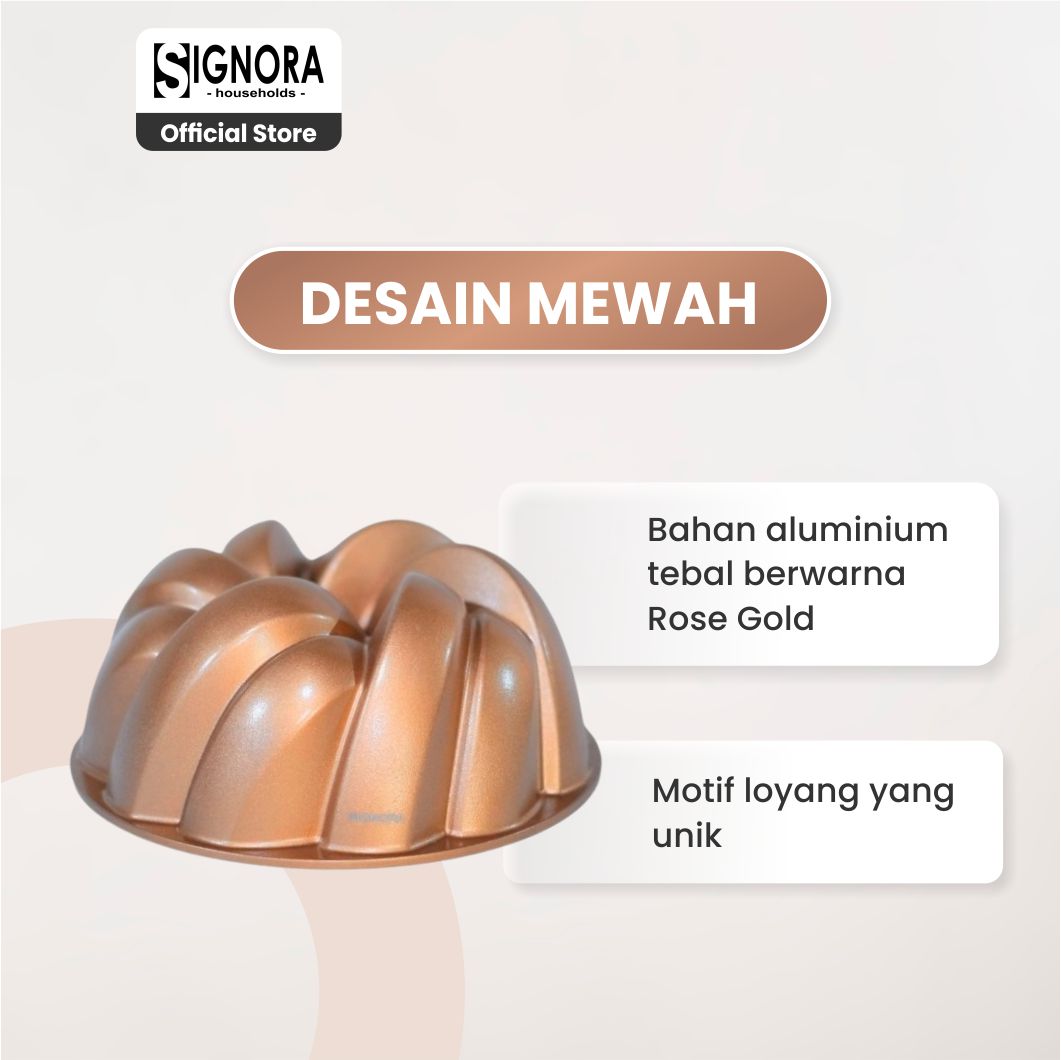 Signora Pan memiliki model elegan dan unik dengan lekukan motif yang tegas sehingga menghasilkan cake yang jauh lebih cantik.