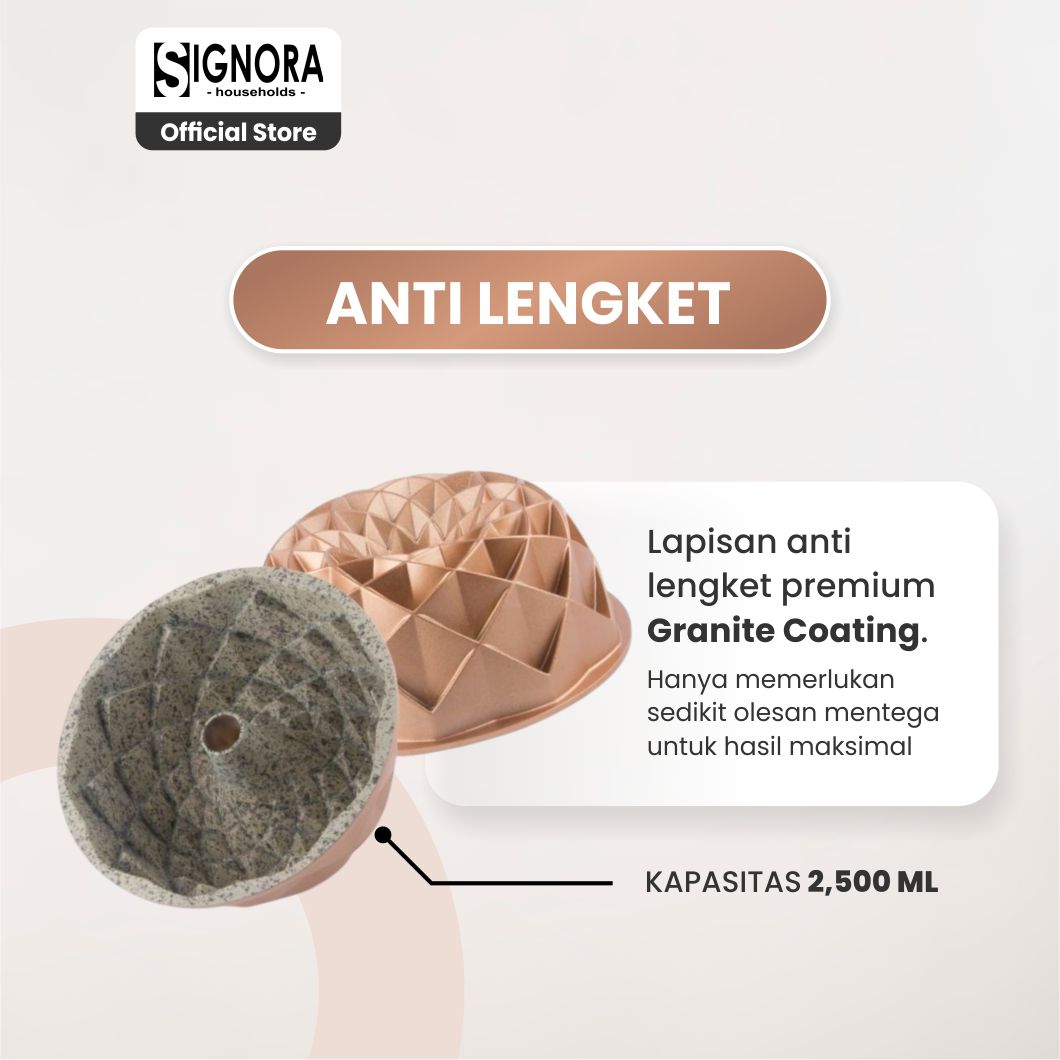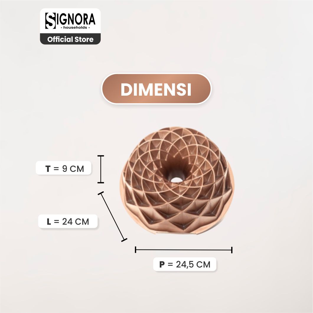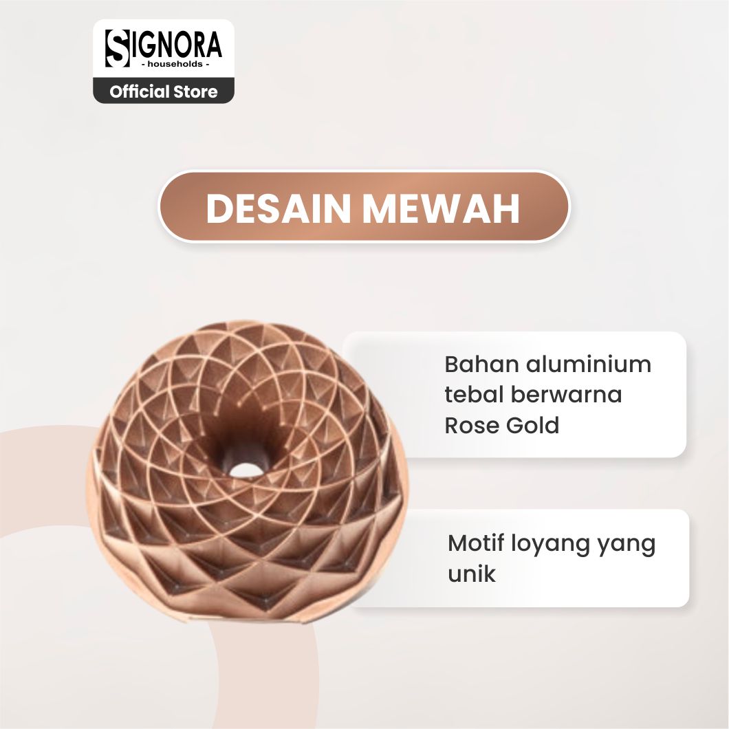 Signora Pan memiliki model elegan dan unik dengan lekukan motif yang tegas sehingga menghasilkan cake yang jauh lebih cantik.