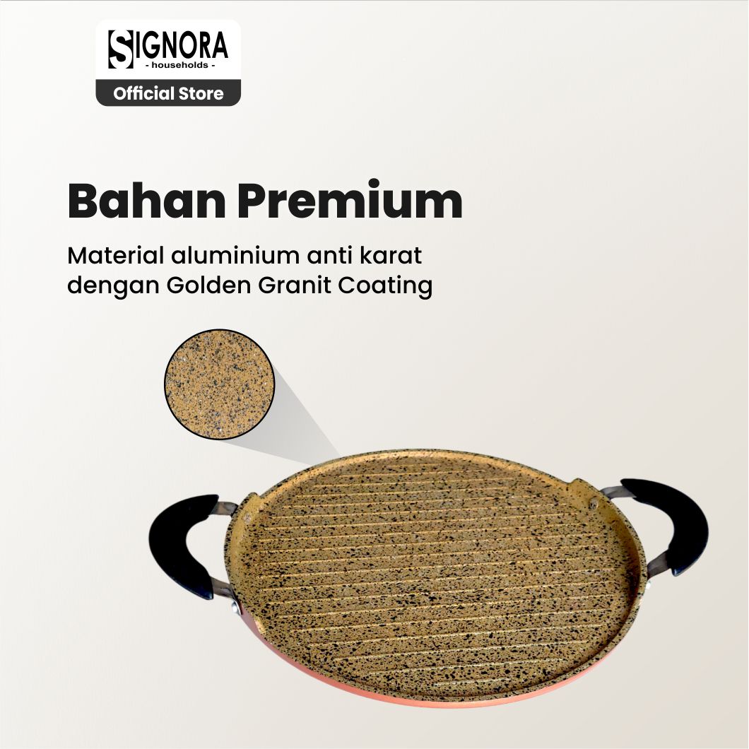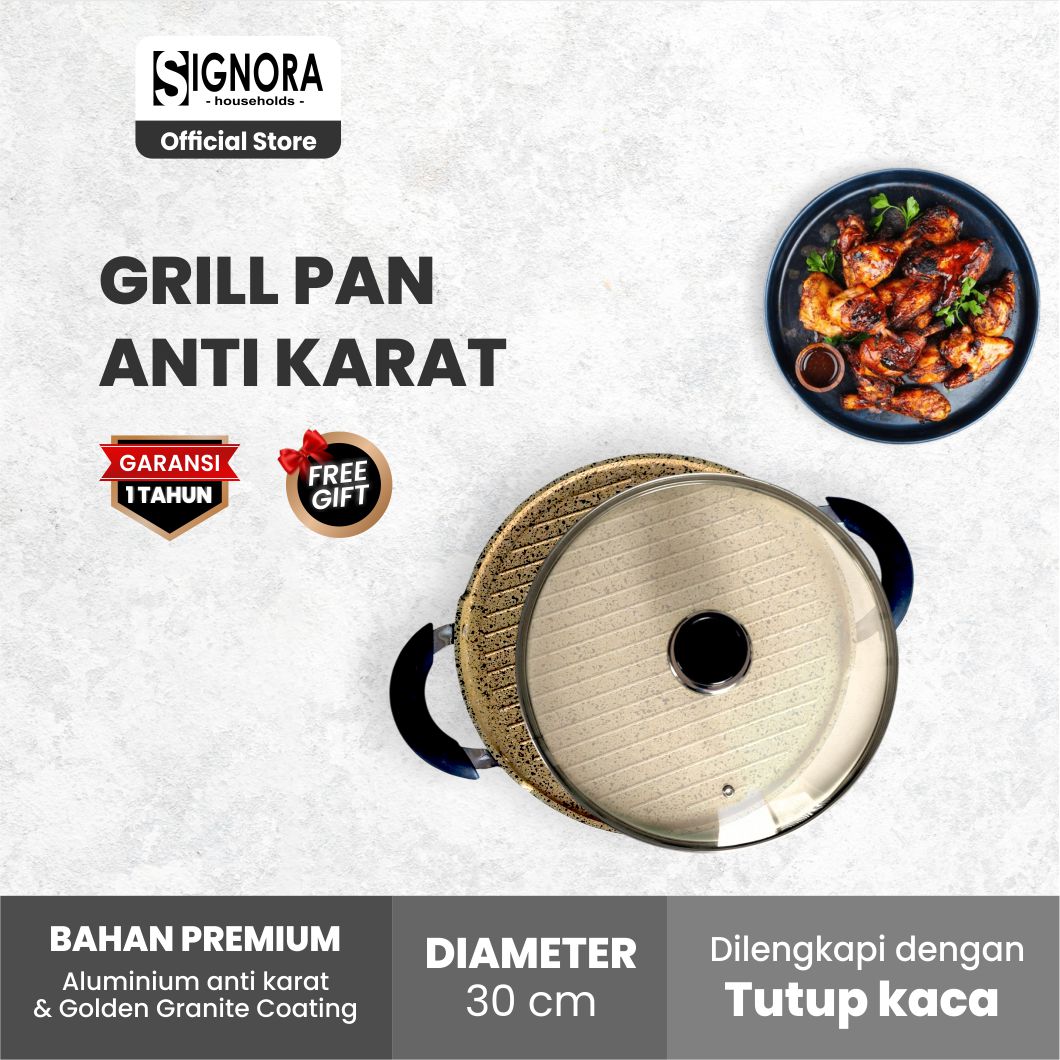 Round Grill Pan ini merupakan pilihan ideal untuk Anda yang gemar memanggang dengan praktis dan higienis. Terbuat dari aluminium anti karat yang ringan dan tahan lama, pan ini dilapisi dengan marble coating anti lengket yang memudahkan proses memasak dan pembersihan.