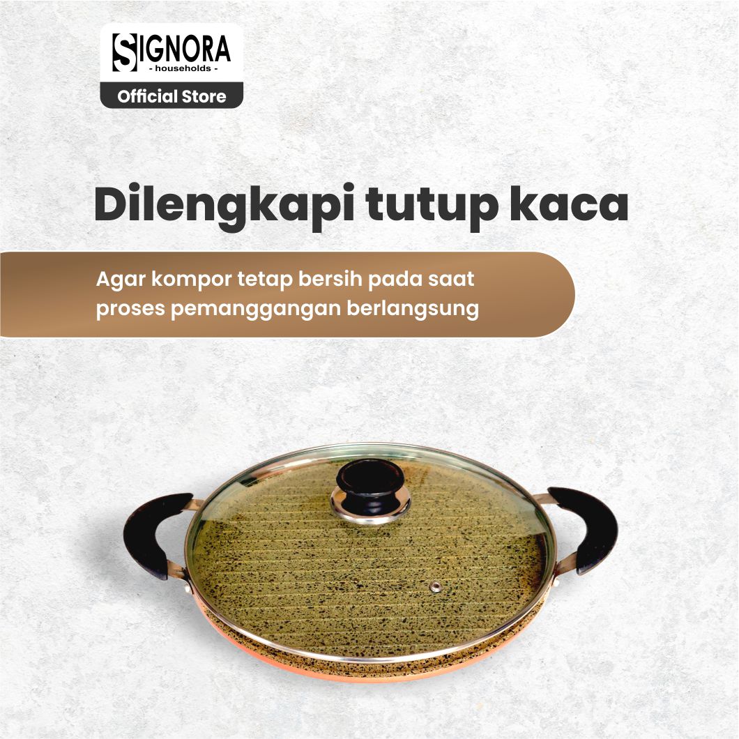 Desainnya yang inovatif dilengkapi dengan penampung minyak untuk mengurangi lemak berlebih, serta celah lubang khusus yang dirancang untuk menempatkan tusuk sate—sempurna untuk barbeque ala rumahan. Tutup kaca transparan memungkinkan Anda memantau kematangan makanan tanpa harus membuka pan, menjaga panas tetap stabil dan efisien. Cocok untuk memasak sate, daging panggang, hingga sayuran dengan cita rasa maksimal!