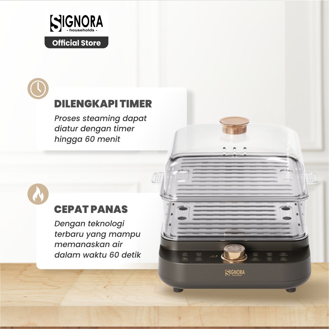 - Timer Fleksibel hingga 60 Menit Atur waktu sesuai kebutuhan, dari sayuran hingga dimsum.